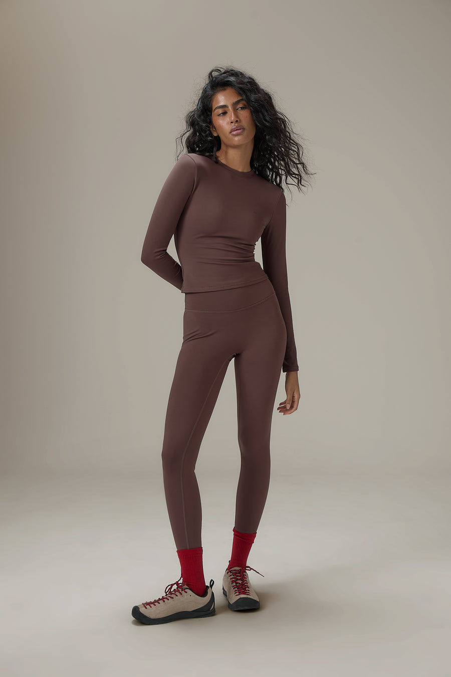 made to move. Meet the Soft Active Long Sleeve in brown. Your new go-to for everyday movement. Designed with a second-skin stretch fit and a softly brushed interior, it blends performance with ease. The minimal tonal logo keeps it sleek, while the mid weight fabric offers the perfect balance between structure and softness.