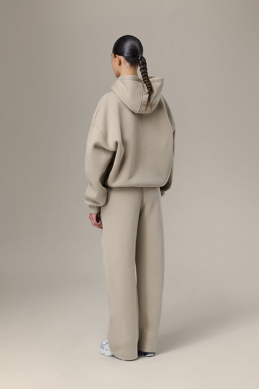Designed for all-day wear with a relaxed fit and soft brushed lining. The elasticated waistband with drawstring ties ensures an adjustable, comfortable fit, while side seam pockets add practical storage. Finished with tonal Sisters & Seekers branding, these sweatpants are part of a coordinating set for effortless style.