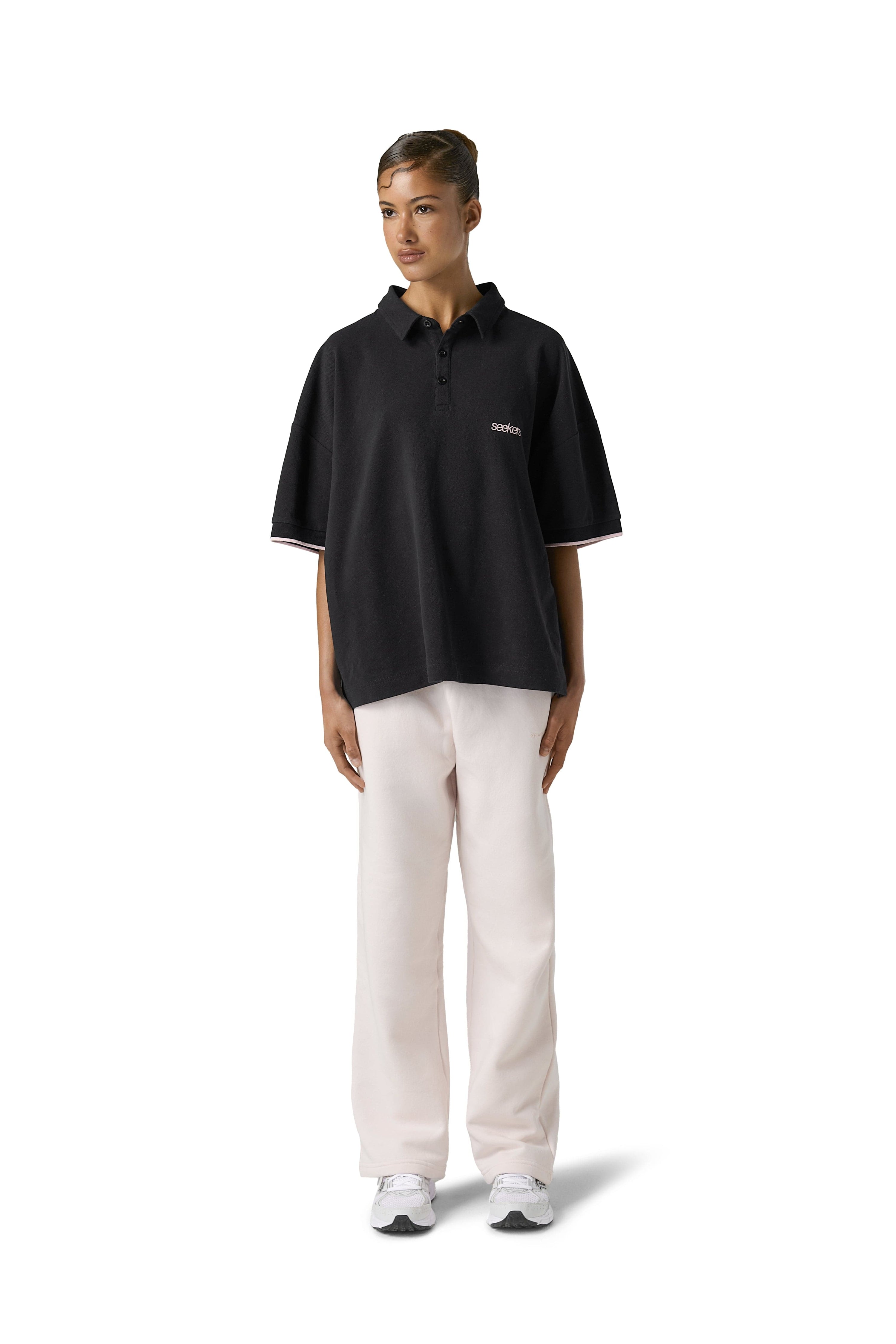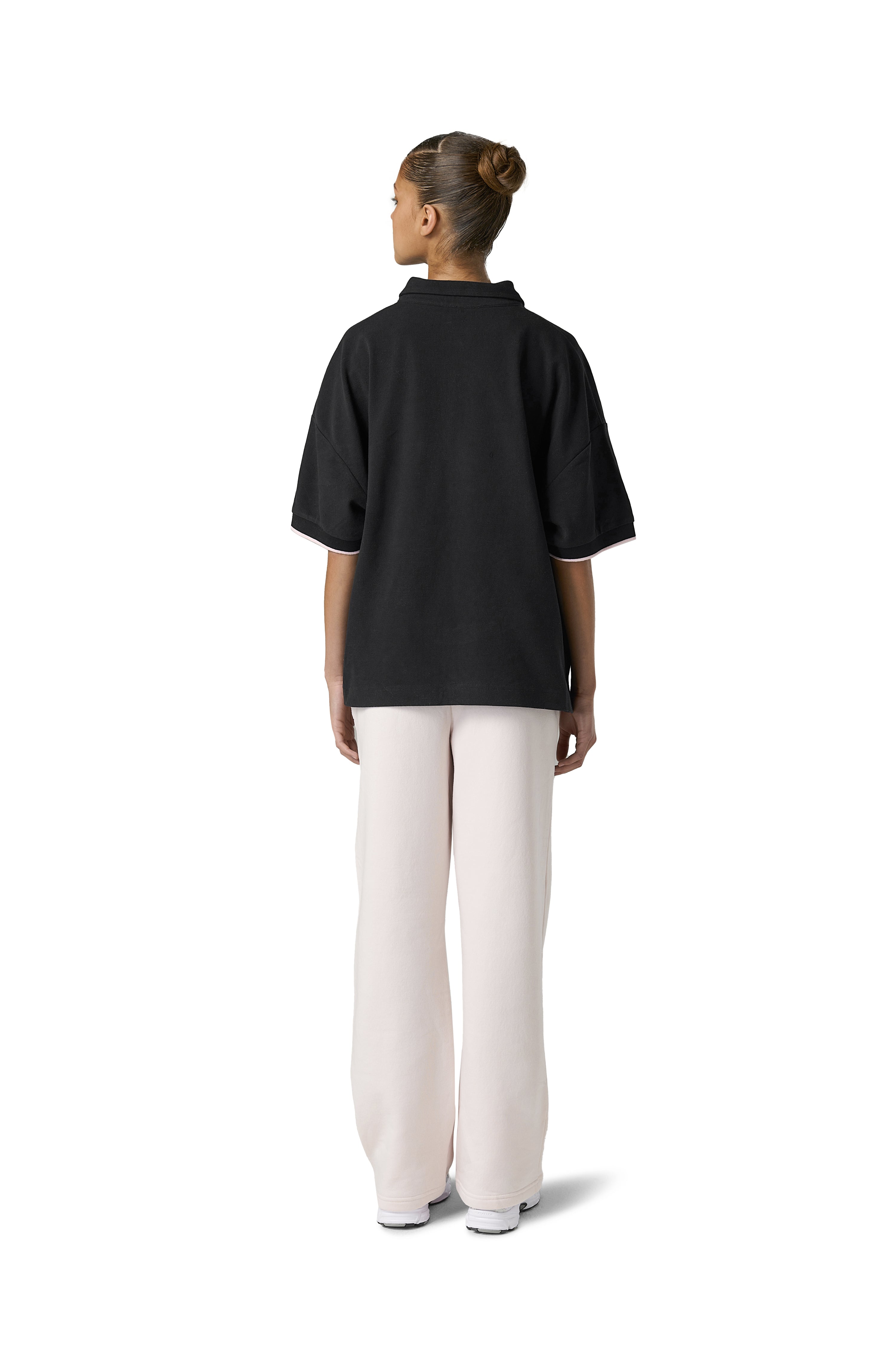 Meet the Calvin Polo. Oversized polo with dropped shoulders in cotton. Features single tipped sleeve hem.