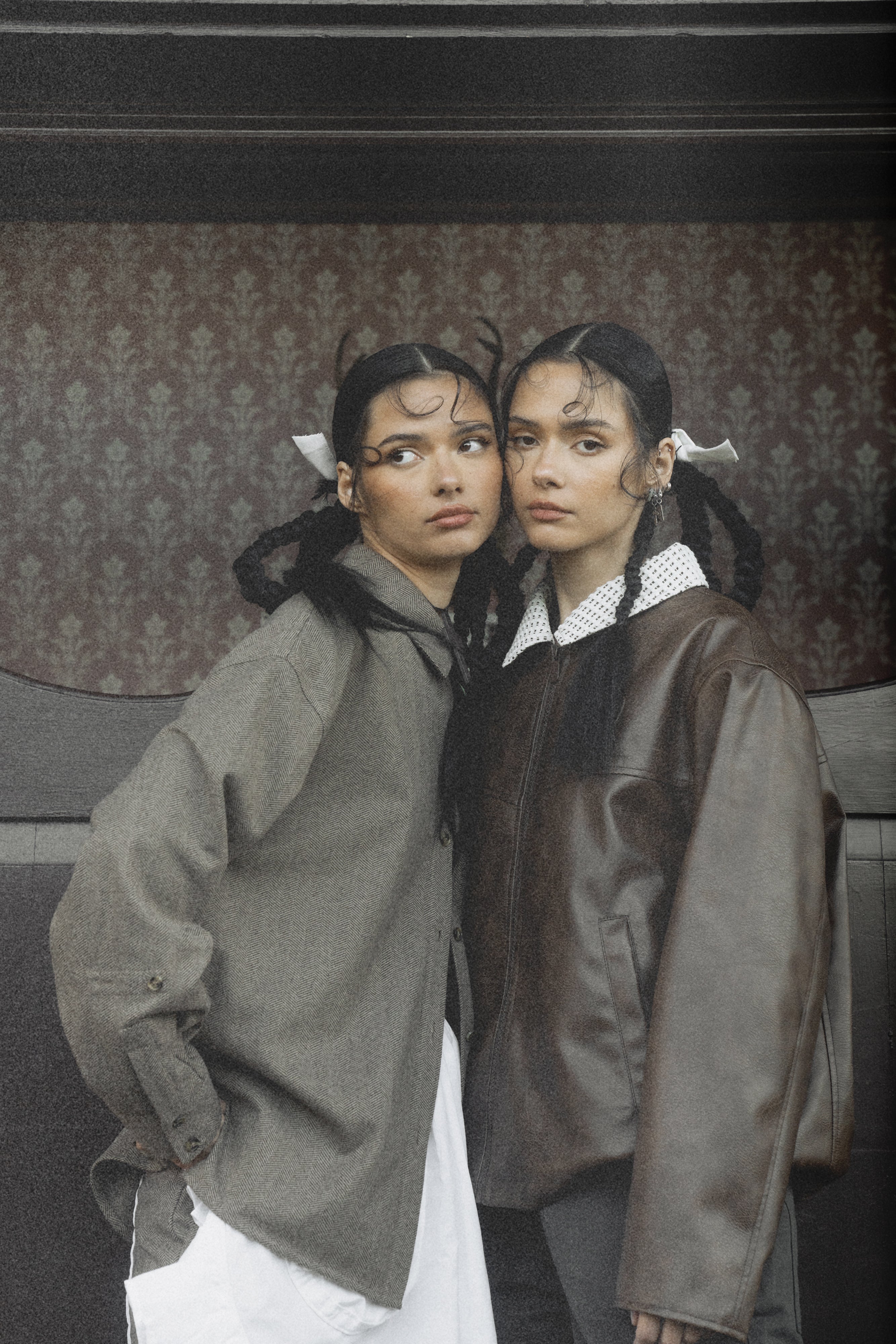 A new wardrobe staple. The CONKER Vegan Leather Jacket featuring a contrast knit collar. Made from a vegan leather fabric.