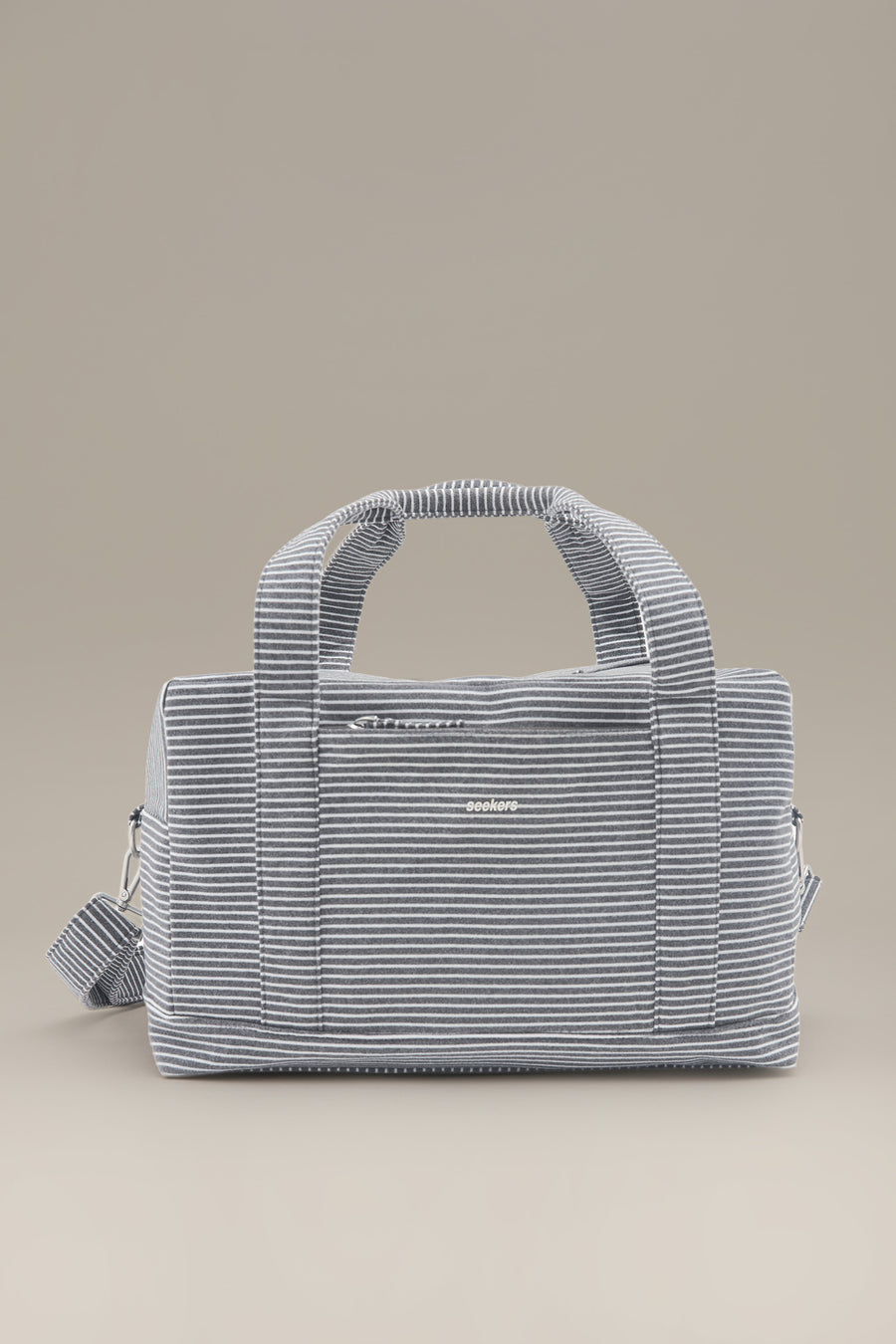 travel in Seekers. Introducing the Paddington Travel Bag. Crafted from super soft, lightweight fabric. Designed for comfort and convenience on the go. It features wide shoulder straps and a detachable crossbody strap for versatile carrying options. The zip-fastened main compartment includes inner pockets to keep essentials organised, while the front pocket offers quick access on the move. Finished with the signature ‘Seekers’ logo in white, it’s part of a coordinating travel set, perfect for effortless style and function.